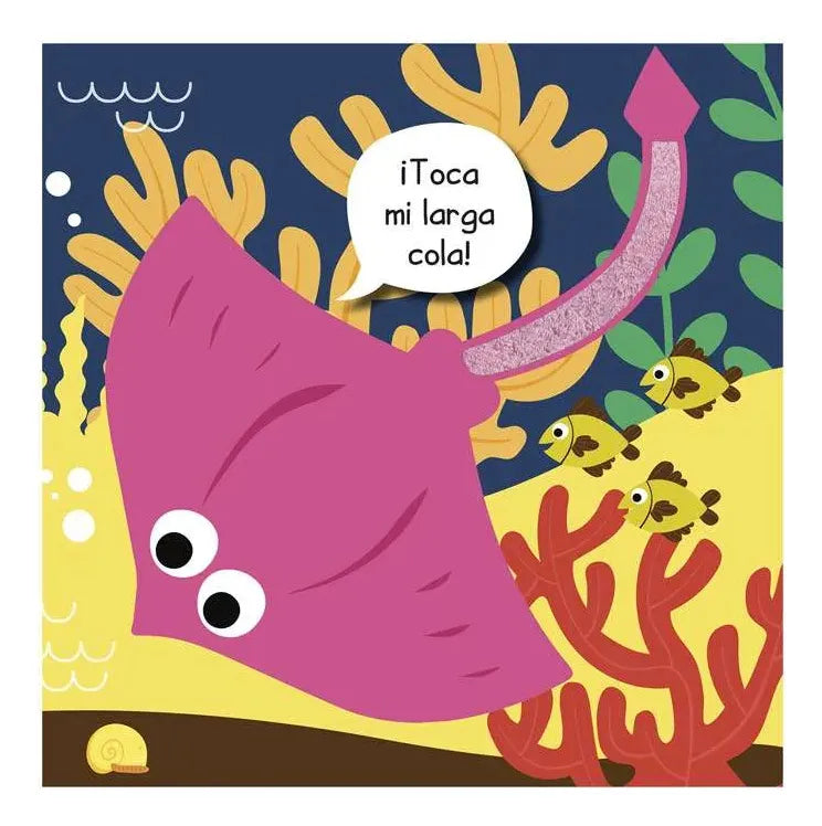 ¡Sumérgete en las profundidades del océano y descubre un mundo lleno de colores y sorpresas! Este encantador libro de tapa dura combina ilustraciones vibrantes con felpa suave y divertida para que los niños puedan tocar, sentir y aprender mientras exploran la vida marina.