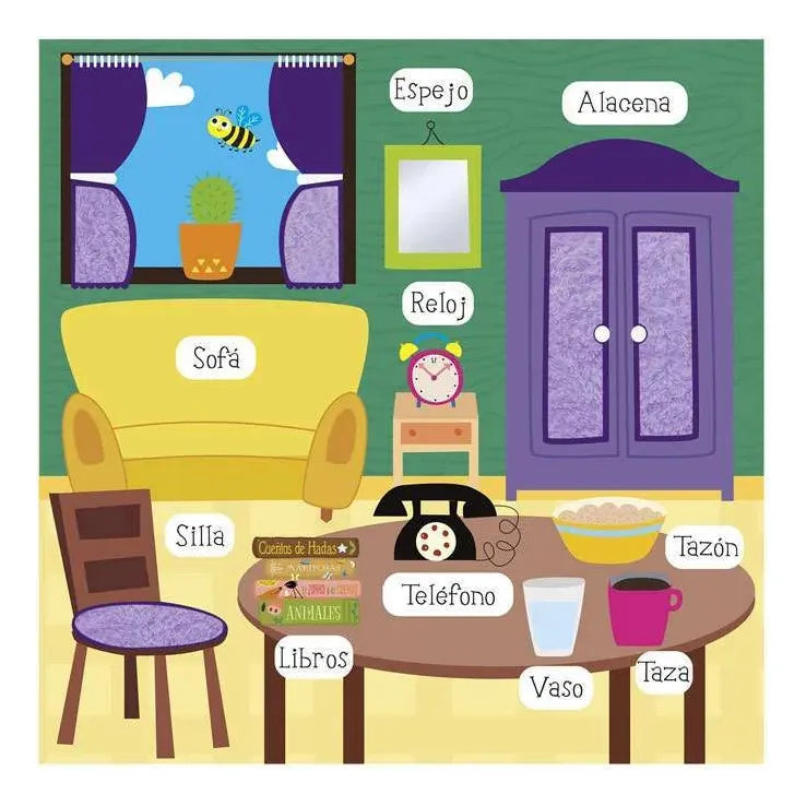 ¡Aprender nunca fue tan divertido y tierno! Este encantador libro de tapa dura ayuda a los más pequeños a descubrir sus primeras palabras mientras disfrutan de ilustraciones llenas de color y felpas suaves para tocar y sentir. Una experiencia de aprendizaje multisensorial ideal para acompañar sus primeros pasos en el lenguaje.